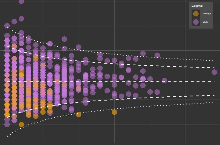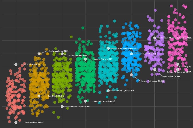 Displays individual data points across categories with slight horizontal spread to show distribution and overlap.