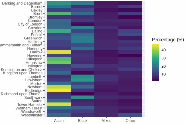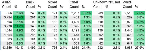 Uses color within a table to quickly highlight higher and lower values across rows and columns.